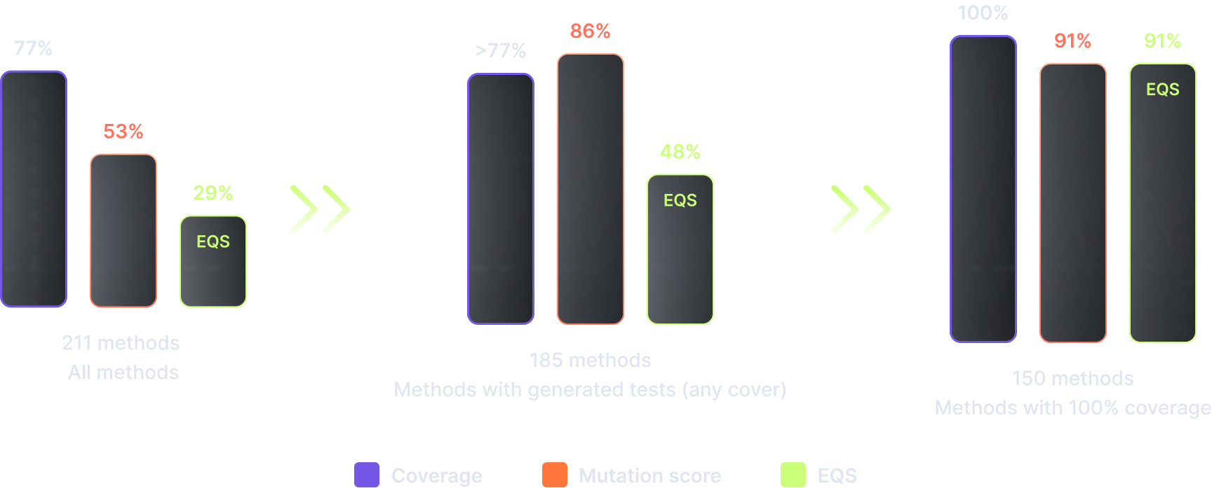 Proves that high coverage with the agent correlates with high mutation score and high EQS
